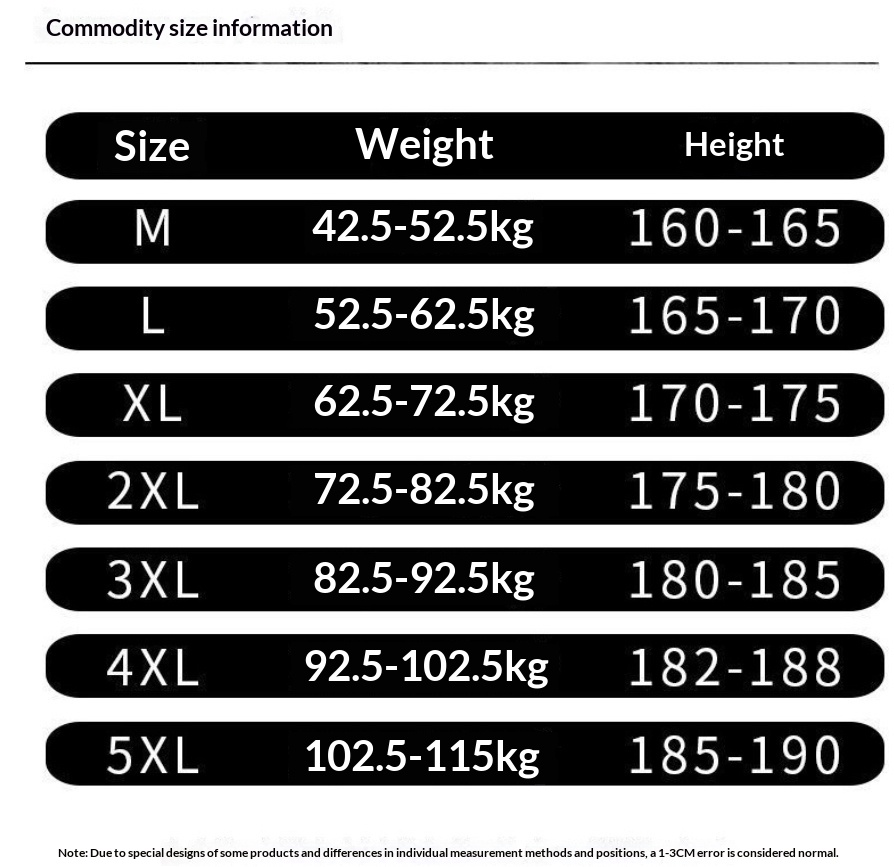 Sizes: L, XL, 2XL, 3XL, 4XL, 5XL